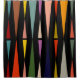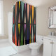 This shower curtain has a mid-century modern design of triangles facing each other repeating across the design.