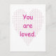 Let someone know that they are loved with these pointillism heart postcards. The text is part of the design. The dots and text are in light red, dark pink.