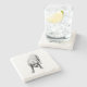 The coasters are gorgeous, a quality feel and heavy weight. They look like a precious archeological find. A rustic stone juxtaposed with a modern floral black and white print. I like the way the print goes slightly imperfect on the cut stone edges giving them a kind-of natural beauty.