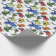 The wrapping paper's design features an image of several colourful poison arrow frogs illustrated by artist Dawn Witherington.