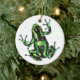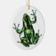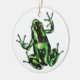 The ornament's front and back design depict's a poison dart frog illustrated by artist Dawn Witherington