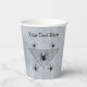 These paper cups are rustic white with a bunch of poisonous black widow spiders with red hourglass markings in and around a triangle shaped black web. Customise your text with the templates on the front and back.