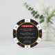 Cool, black, white, red and gold casino poker chip wedding reception menu. Personalise it with your event details.