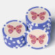 An orange, gold, and purple kaleidoscope butterfly with marbled colours decorates these ceramic poker chips. The background is a light sand colour with a purple edge.