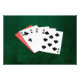 Five playing cards forming the famous poker dead man's hand. The dead man's hand is a hand of two pair, consisting of black aces and eights. Along with an unknown "hole" card, these were the cards reportedly held by "Old West" folk hero, lawman and gunfighter Wild Bill Hickok when he was murdered.