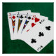 Five playing cards forming the poker three of a kind hand. Three of a kind is a poker hand that contains three cards of the same rank, plus two cards which are not of this rank nor the same as each other. This hand is also called trips or a set. This is a hand of three cards of jacks, ten and three.