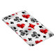 Grey, textured background with polygonal playing cards symbols. Symbols of playing cards, heart, diamond, spade and club.