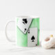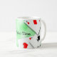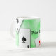 This fun coffee cup features a picture of four aces on a green background. The text Poker Time can be customised to suit your mug needs.