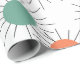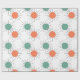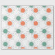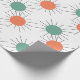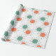 This wrapping paper has a mid-century modern design of circles with lines behind in orange and green.