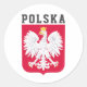 Poland flag, with coat of arms superimposed. Rzeczpospolita Polska.