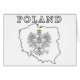 Simple design with a map outline of Poland with the Polish White Eagle, the coat of arms or crest of Poland in the centre. The word Poland is above the map.