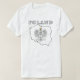 Simple design with a map outline of Poland with the Polish White Eagle, the coat of arms or crest of Poland in the centre. The word Poland is above the map.