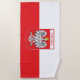 This beautiful beach towel has the Poland's Flag on it. The flag of Poland consists of two horizontal stripes of equal width, the upper one white and the lower one red. The two colours are defined in the Polish constitution as the national colours. A variant of the flag with the national coat of arms in the middle of the white stripe is legally reserved for official use abroad and at sea.