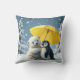 This is a polar bear and penguin pillow cushion. It is a design of a polar bear and penguin sharing an umbrella. Have a nice day.