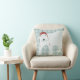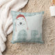 This throw pillow is perfect for Christmas or winter decorating with painted illustrations of Arctic animals in knit winter hats. There's a polar bear illustration on the front and a reindeer graphic on the back. The graphics are set against a soft mint patterned background.