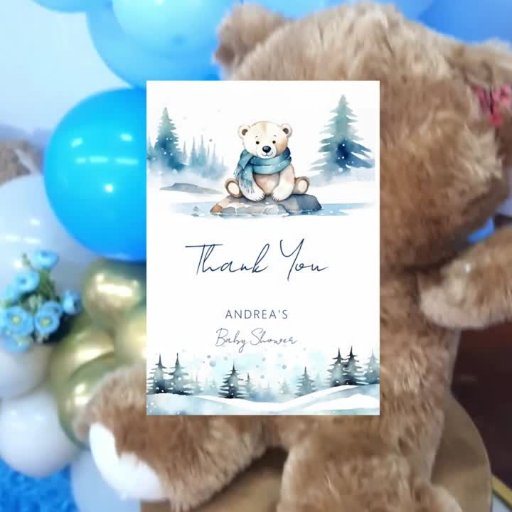 Polar bear arctic winter we can bearly wait baby shower tableware personalised template plates, watercolor cute polar teddy bear wearing a blue scarf sitting on ice rock snowy pines winter themed baby shower welcome sign personalised baby shower plates