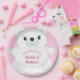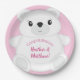 Welcome a new baby girl this winter with this cute polar bear baby shower design with a pink background. The adorable soft sweet fluffy polar bear is drawn like a cuddly stuffed animal.