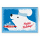 Cute polar bear with chef hat serving up a dinner of snowflakes on this culinary Christmas card for chefs, catering, restaurants and other food or cooking pros.