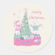 Adorable cream colour round Holiday sticker featuring two polar bear cubs decorating a Christmas tree . Personalise it with your own text . Also available in blue .