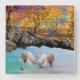 Polar Bear Cubs Fishing, Square Wall Clock