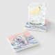 The coasters are gorgeous, a quality feel and heavy weight. They look like a precious archeological find. A rustic stone juxtaposed with a modern floral black and white print. I like the way the print goes slightly imperfect on the cut stone edges giving them a kind-of natural beauty.