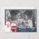 This whimsical Christmas photo card features an optional deep blue border topped with a red and white polar bear characters and typography text design of 'Bear Hugs.' The reverse is a matching dark blue dotted with small snowflakes. A provided template allows you to easily add your photo, a personal closing message and your names. Search ID851 to see all the coordinating products for this design.