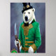 Cute and adorable Saint Patrick's day Polar bear with green and golden clothes and a black hat. This is a AI generated art.
