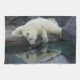 Polar Bear Kitchen Dish Towel Home Decor. Picture of polar bear beside a pond kitchen towel. Reflections of polar bear on water picture design kitchen dish towel design.