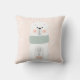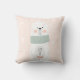 NewParkLane - Cute Throw Pillow, with polar bear and fun quote: 'Let it snow' in modern, handwritten typography. With a snowy background in soft peachy orange.