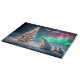 This seasonal Christmas holiday glass cutting board features an AI generated image of a mother polar bear and her two cubs on the arctic ice, gazing in wonder at a beautiful Christmas tree with tiny colourful lights all over. In the background can be seen a magnificent display of Northern Lights dancing across the sky, the Aurora Borealis, in shades of green and pink. Use Zazzle's many different font styles and colours to customise the text in the image to your preference, or leave it blank if you prefer. Zazzle also has many backgrounds that you my choose from, as well as icons that you can add to make the image your own. Have fun making it just the way you like! If you need any help customising this design, please don't hesitate to contact me, and I will be more than happy to assist you. You may contact me at KarenCoffelt@wolfmoonartanddesign.com or through Zazzle by clicking on the Chat button (please be aware that I am not available 24/7 to chat, but I will get back you ASAP). Thanks for looking!
