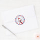 Wrap up mailing or your holiday gift with a pretty round seal that features an air mail envelope's borders in dark blue and red. It has an illustration of Rudolph the reindeer in a cosy scarf and winter hat. North Pole Post Office uses air mail all the time because all Christmas mail must arrive on time. The personalizable text reads NORTH POLE - EXPRESS DELIVERY - SANTA MAIL