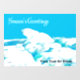 A somewhat stylised, blue-toned image of a Polar Bear (Ursus maritimus) resting on the polar ice pack on on a dark, moonlit winter night. Text reading, "Season's Greetings" appears in glowing blue and white. Add your own additional text.