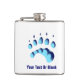 The flask itself is fine. It’s a cheap flask, obviously bought in bulk, however am prepared to overlook that. Given that it is a personalized item, I would have liked to have seen gift boxing instead of the generic packaging. Terrible printing, and/or quality. It’s a cheap, tacky vinyl. It is not cut straight and is also applied in a way that it is overhanging the bottom, causing the glue to catch on items and it will eventually roll and tear, damaging the wrap.