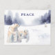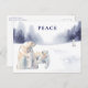 Send your customers some holiday cheer with these watercolor polar bears and white snow rabbit. They're sitting on the snow covered hill with blue forest trees behind them. "Happy Holidays" typography on reverse side, with templates for corporate names and return address.