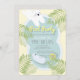 This cute "pool party" baby shower invitation card features one polar bear is just about to jump into a pool while the other polar bear is relaxing and floating in a turquoise blue coloured swimming pool with a inner tube under the palm tree leaves on light yellow background. The reverse side features light grey polka dot background. Change the background colour of both the front and the back, and personalise it for your needs. You can find more polar bear products at my store.