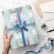 Polar Bear Reindeer with Skis Blue Wrapping Paper