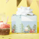 A super cute Holiday blue wrapping paper for kids with the pattern of two friends (a polar bear and a reindeer) going skiing . The text says "Happy Holidays" , but you can change it and add your own .