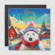 A Polar Bear wearing a Santa hat and scarf with falling snow. Merry Christmas greeting.