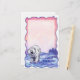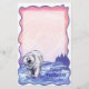 Cute polar bear personalised stationery features our original polar bear character in a snowy landscape with a pink and purple textured sky painted by our talented children's book illustrator, Traci Van Wagoner. Get a new polar friend today and send out your messages and greetings to all your friends with this cute Polar Bear design. Go wild and buy a complete stationery set of Polar Bear fun stuff at our store!