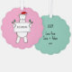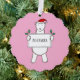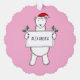 This beautiful illustration by Helen McCartney Designs shows a fluffy polar bear wearing a Christmas hat. The bear is holding a banner with a name of your choice.