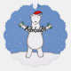 This beautiful illustration by Helen McCartney Designs shows a fluffy polar bear wearing a Christmas hat. The bear is holding a banner with a name of your choice.