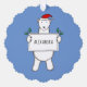 This beautiful illustration by Helen McCartney Designs shows a fluffy polar bear wearing a Christmas hat. The bear is holding a banner with a name of your choice.