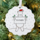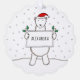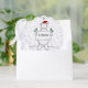 This beautiful illustration by Helen McCartney Designs shows a fluffy polar bear wearing a Christmas hat. The bear is holding a banner with a name of your choice.