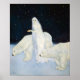 A truly enchanting print (or poster) of a magical winter's night with star-swept sky, friendly polar bears and a beautiful maiden. Classic and elegant black and white, with a tiny hint of red.