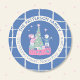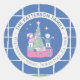 Sweet blue round Holiday envelope seal featuring a couple of polar bears decorating a Christmas tree . Personalise it with your family's name and address .