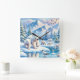 Polar Bears and Snowy Winter Scene Painting Square Wall Clock