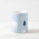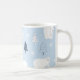 Cuddly polar bears surrounded by Christmas trees and snowflakes against an ice blue background