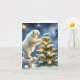 Celebrate the warmth and wonder of the holiday season with this enchanting Christmas card featuring two playful polar bears climbing a snow-covered evergreen tree, adorned with glowing star-shaped fairy lights under a starry night sky. This beautiful watercolor illustration captures the magic of Christmas, making it a perfect card to share joy, love, and festive cheer with friends and family.