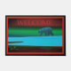 A polar bear roams the ice during the long polar night; the Northern Lights in red and green glow in the distance. Text reading, "WELCOME" also appears.
