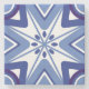 Polar Starburst radiates a bold geometric energy with a central star-shaped pattern bursting outward. Crisp white contrasts with icy blue and deep indigo, creating a dynamic sense of movement and symmetry. The design evokes frozen elegance and celestial alignment, perfect for striking tilework, modern interiors, or statement decor
